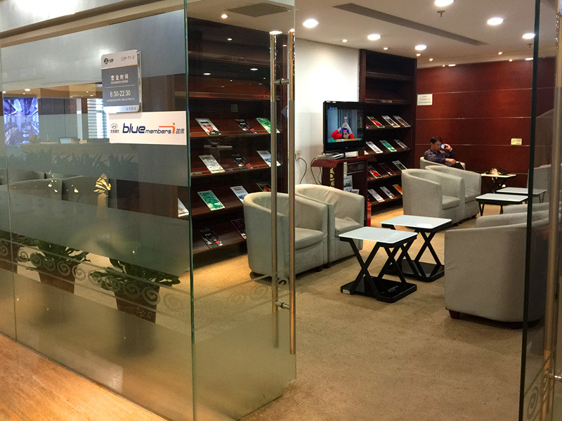 通过安检后,隔离区内海航头等舱休息室对面。
